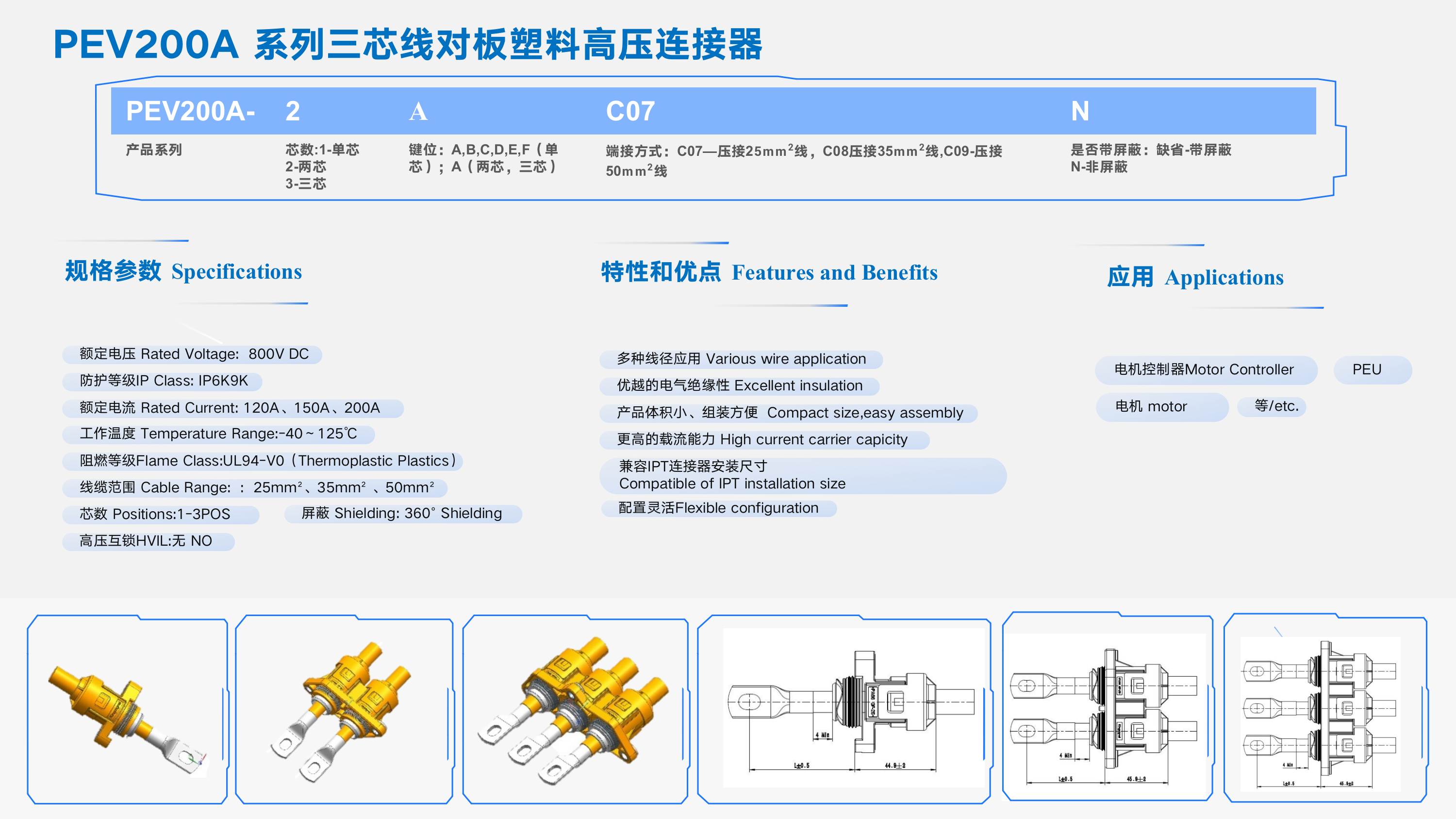 PEV200A 系列三芯線(xiàn)對板塑料高壓連接器