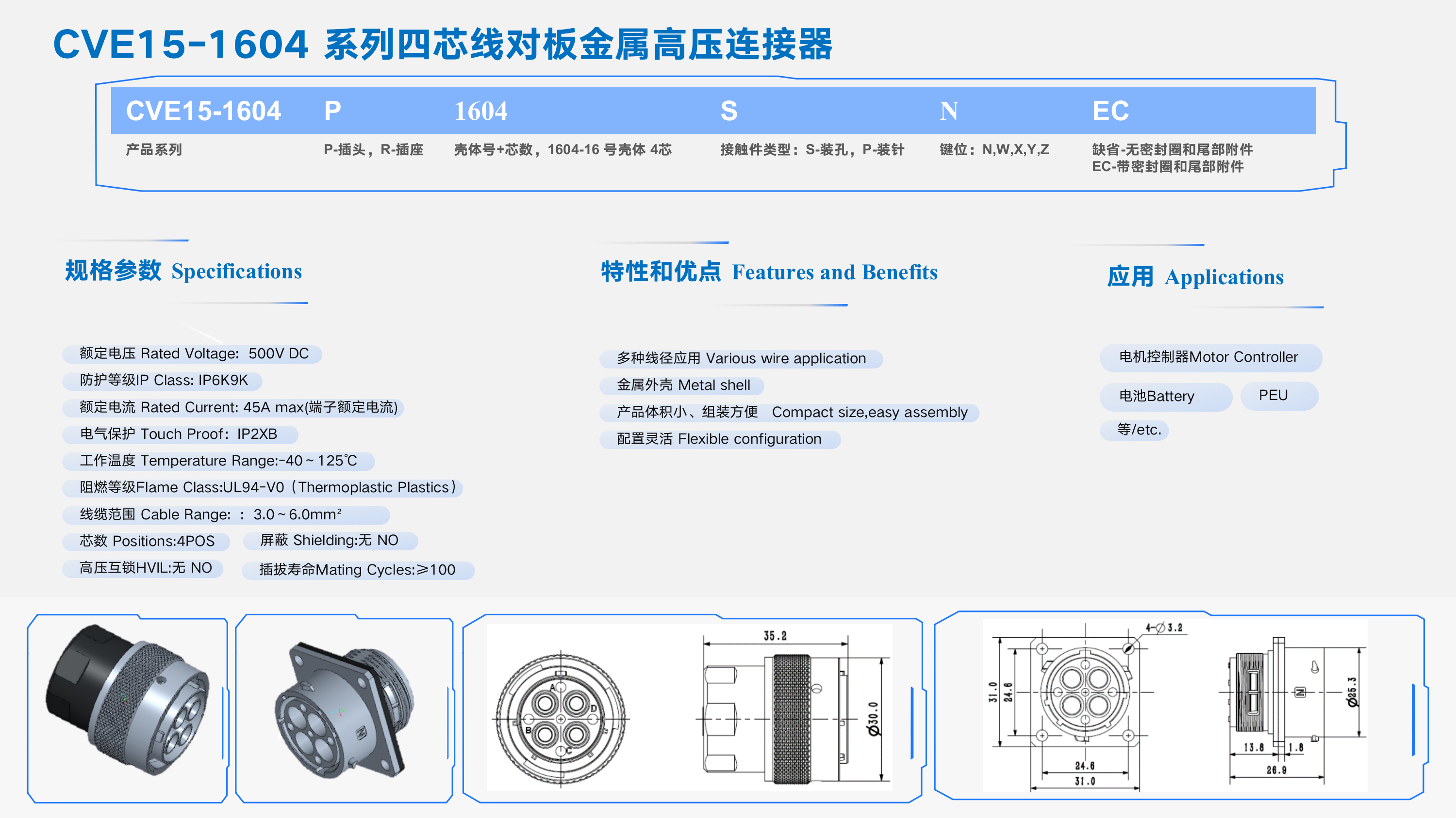 CVE15-1604 系列四芯線(xiàn)對板金屬高壓連接器