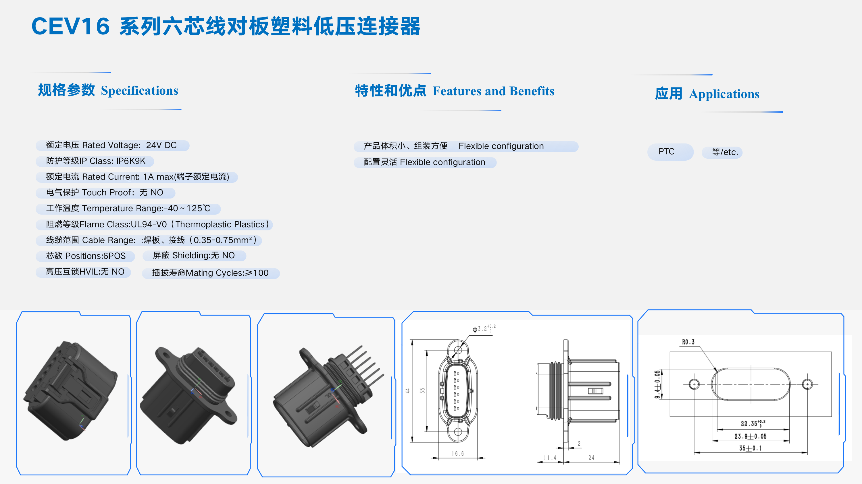 CEV16 系列六芯線(xiàn)對板塑料低壓連接器