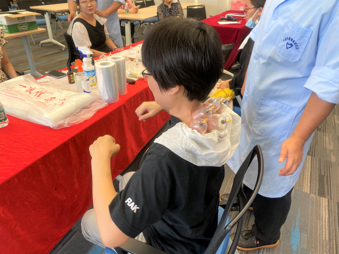 活動(dòng)開(kāi)始,中醫館的醫生就早早準備好按摩、理療所需器械,同事們趕來(lái)紛紛向醫師們講述自己需要緩解的身體問(wèn)題,醫師們也根據不同的情況做出了相應的緩解措施,活動(dòng)現場(chǎng)大家熱情高漲,舒展肩頸,短暫忘記忙碌的工作,緩解疲勞。黨支部以群眾活動(dòng)為基,從小事做起,關(guān)心員工身心健康,主動(dòng)引導員工以積極的心態(tài)和強健的體魄投身到工作和生活中。