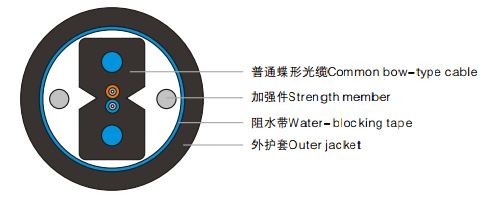 • 光纖置于兩根加強件中間,具有優(yōu)異的抗側壓和抗拉性能。