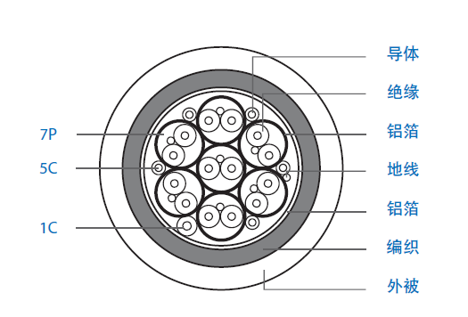 | 導體:28 AWG 鍍錫銅線(xiàn)0.38 | 半成品:7P+6C+地線(xiàn), 一起成纜 |