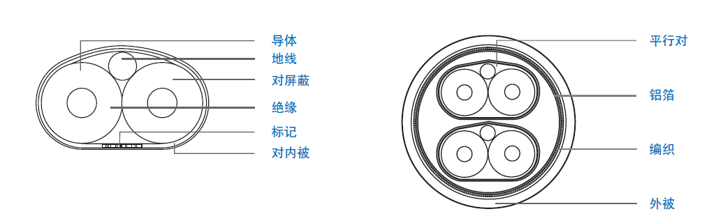 | 地線(xiàn):28 AWG 單極鍍錫銅線(xiàn), 外徑0.33 mm | 外屏蔽:38 AWG 鍍錫導體,重疊率 65% |